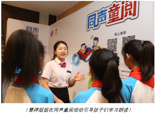 在广州购书中心肯德基,一面装满故事的“声阅墙”前,慧婷姐姐引导孩子们体验声音阅读乐趣,更是带领他们走进公益的世界——献出他们的声音,录制有声故事,送往肯德基小候鸟图书角,为留守、流动儿童分享阅读的力量,陪伴同龄“小候鸟”的成长。这里是“广州少年儿童图书馆.肯德基声阅推广基地”,也是广东肯德基“同声童阅”项目的主题餐厅,慧婷姐姐就是一位温暖的领读者,在购书中心肯德基举办的声阅训练营上,给孩子们分享朗读的技巧,“希望城市孩子们体会声音阅读之美的同时,捐声助人传递爱心。童真诚挚的声音,可以化成陪伴留守、流动儿童‘小候鸟’成长的礼物,帮助他们沐浴在爱的阳光下。”